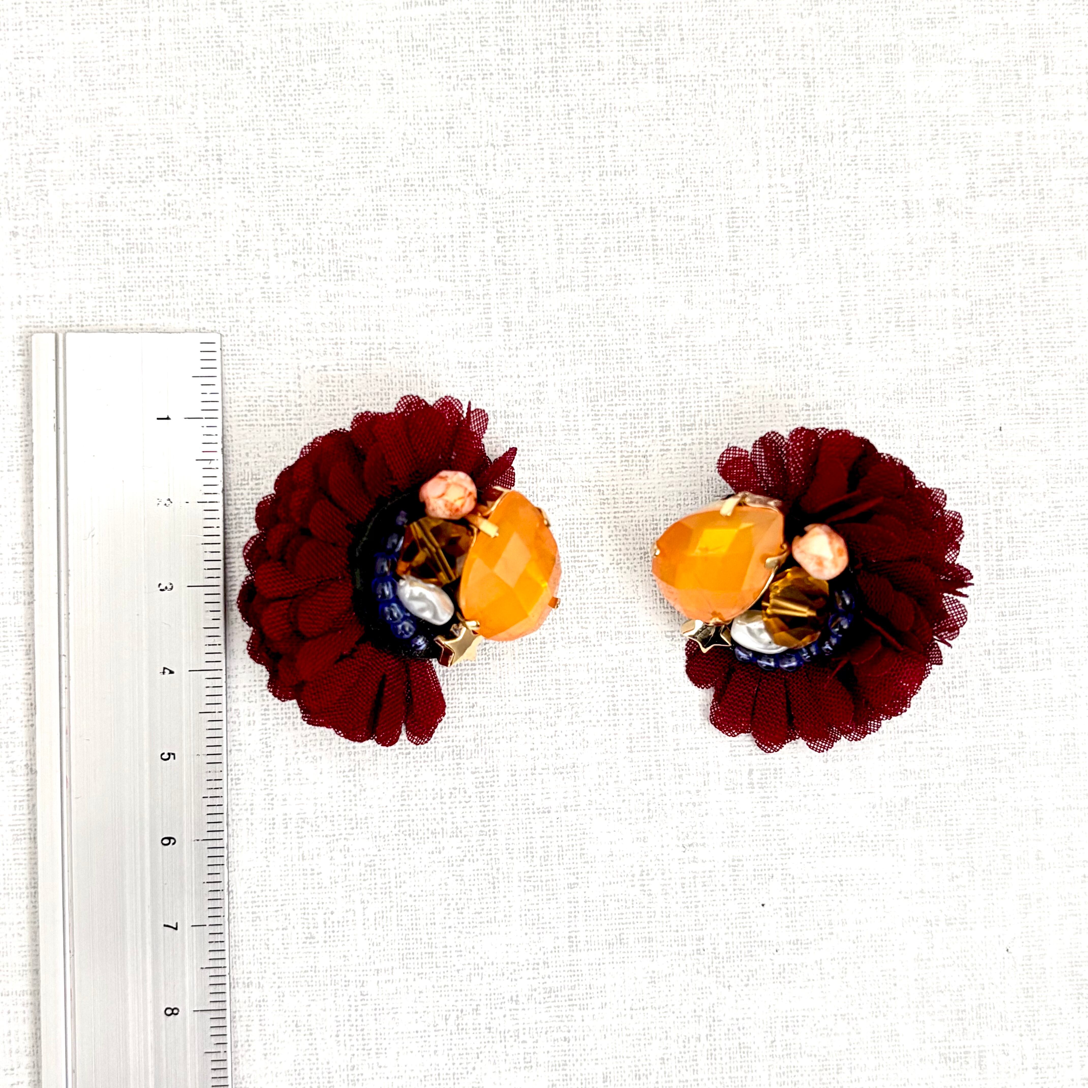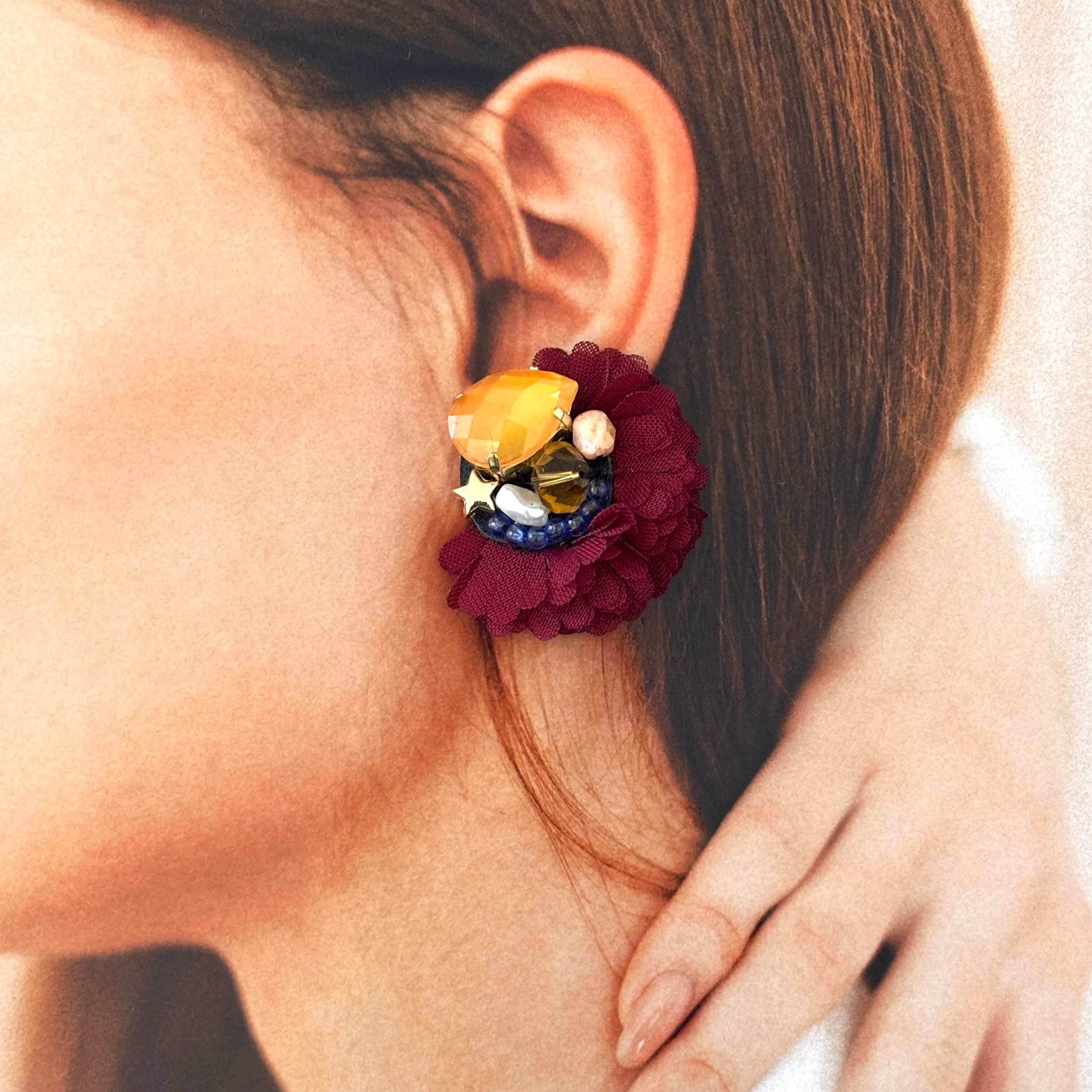 深みのあるボルドーとイエローオレンジの組み合わせが魅了的なイヤリングです。